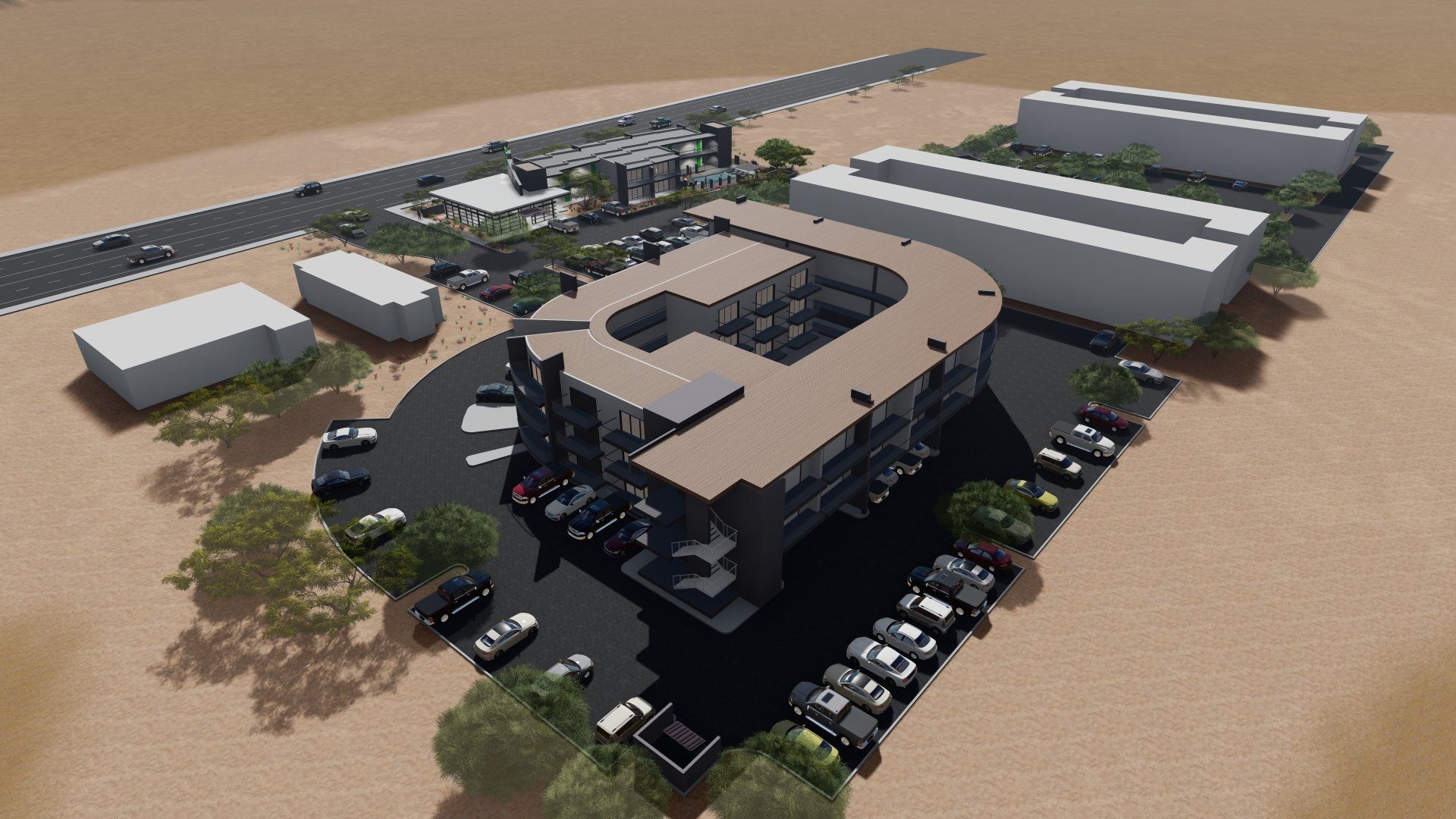 The goal of the new building units is to add street appeal to the existing project while adding new amenities to the existing project. The added amenities include pools, fire pits, grills, and outdoor gathering spaces. The addition of Building A along Central Ave will also include approximately 1400 SF of leasing office space and new interior amenity community space intended to add to the quality of life for the existing and new complex’s inhabitance. Units are rotated on the site to maximize views of the surrounding environment as well as add new architectural interest to the site on a pedestrian scale. New structures will include the addition of an elevated material pallet that will enhance the streetscape as well as the new on-site amenities. The updated site plan shall provide one main access point to the site off on Central Ave to reduce traffic to the adjacent neighborhoods.
